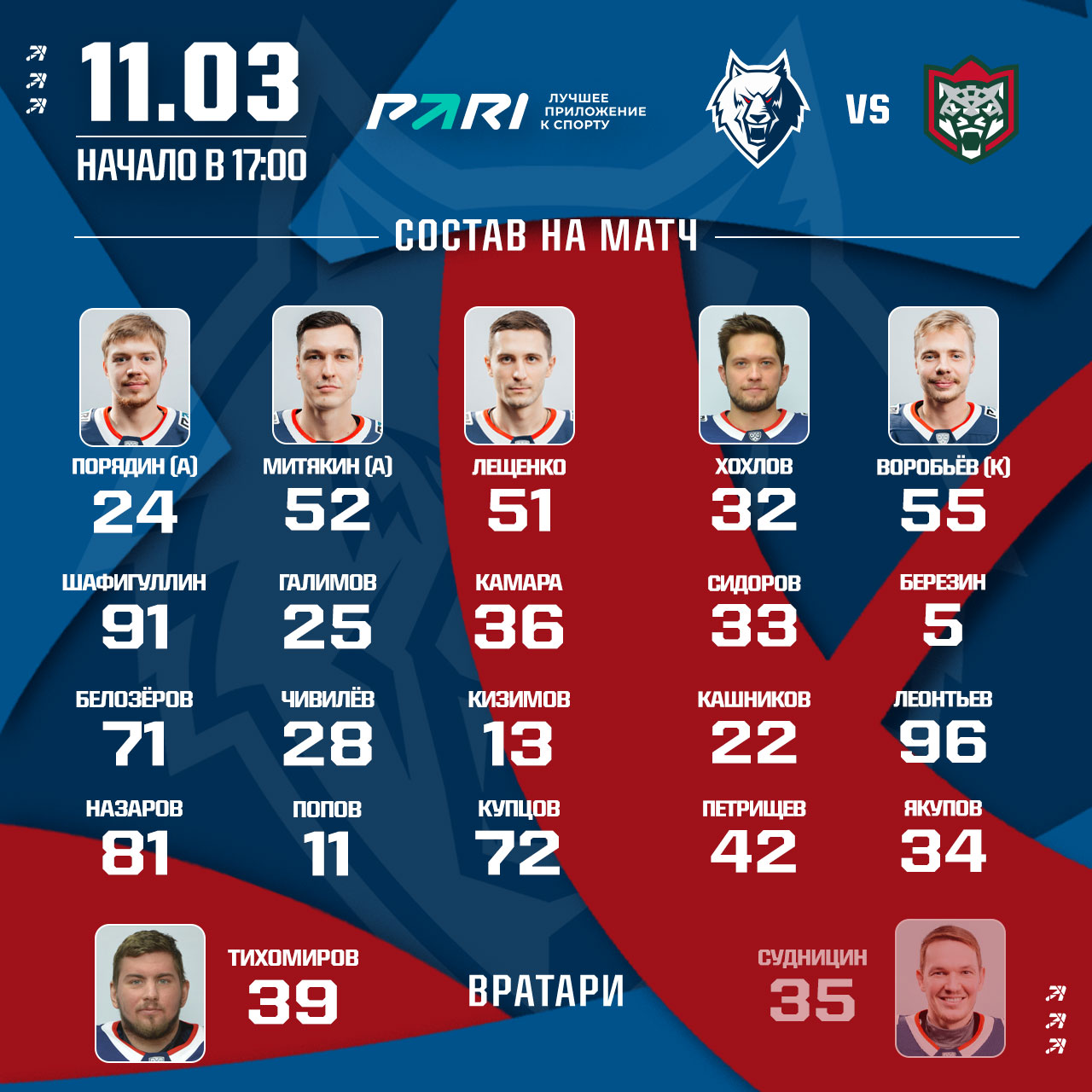 Старт поединка на «Нефтехим Арене» намечено на 17 часов. Если вы не сможете быть на трибунах, то смотрите игру на телеканалах КХЛ Prime и ТНВ.110323.jpg)