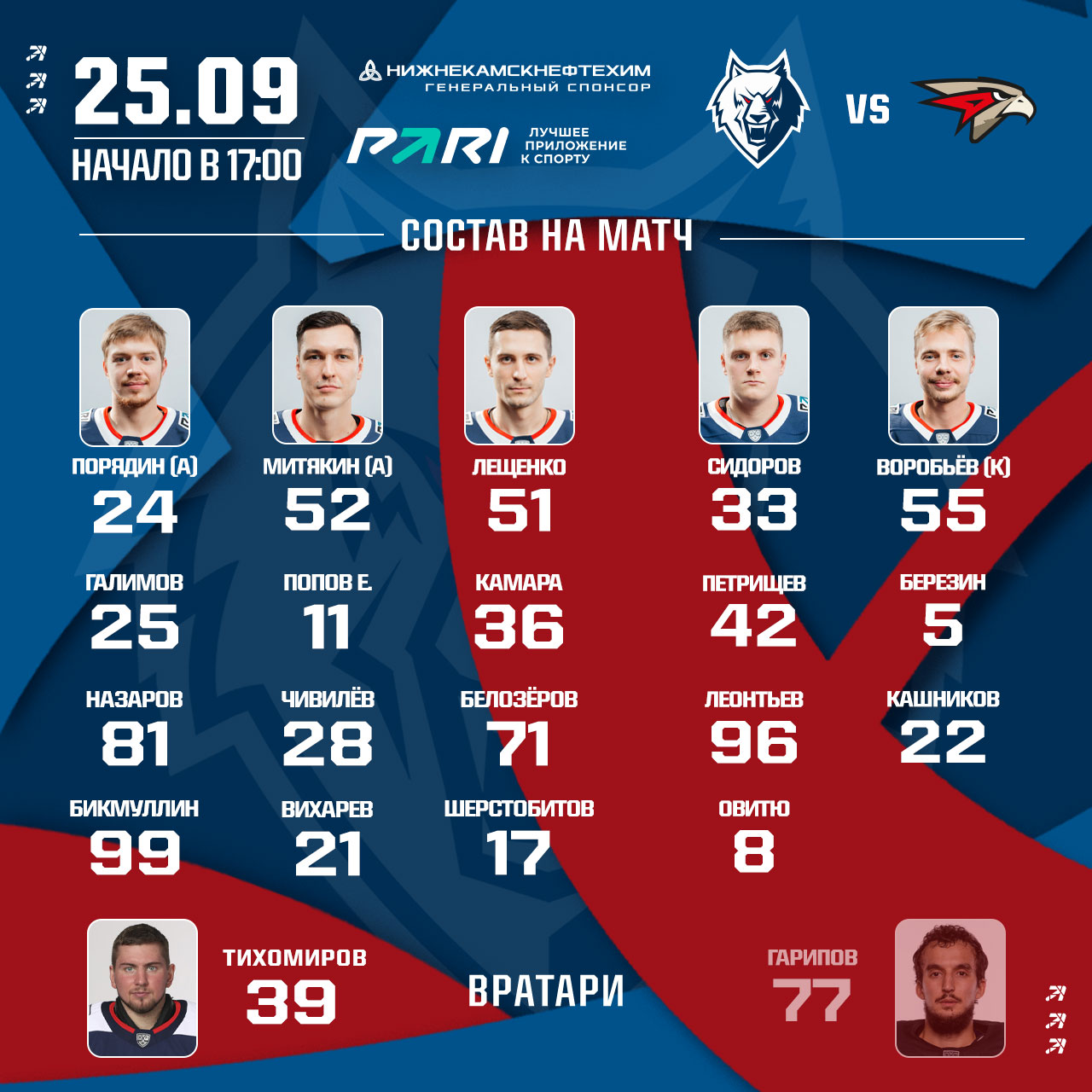 «Нефтехимик» - «Авангард»: состав нашей команды