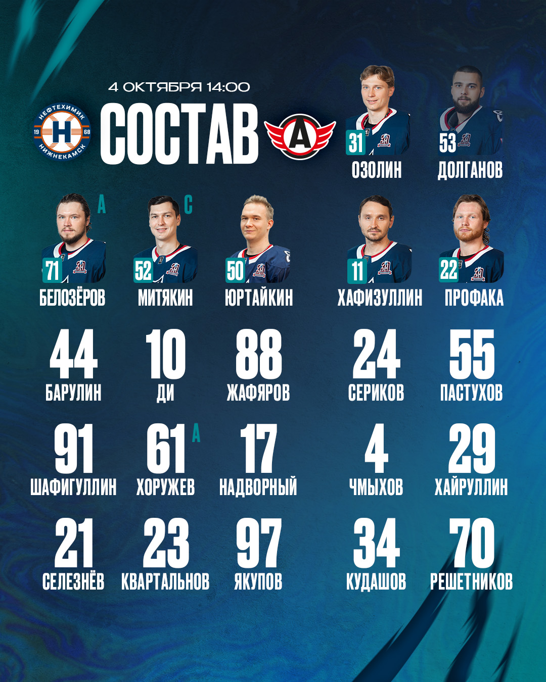 «Нефтехимик» — «Автомобилист»: состав нашей команды