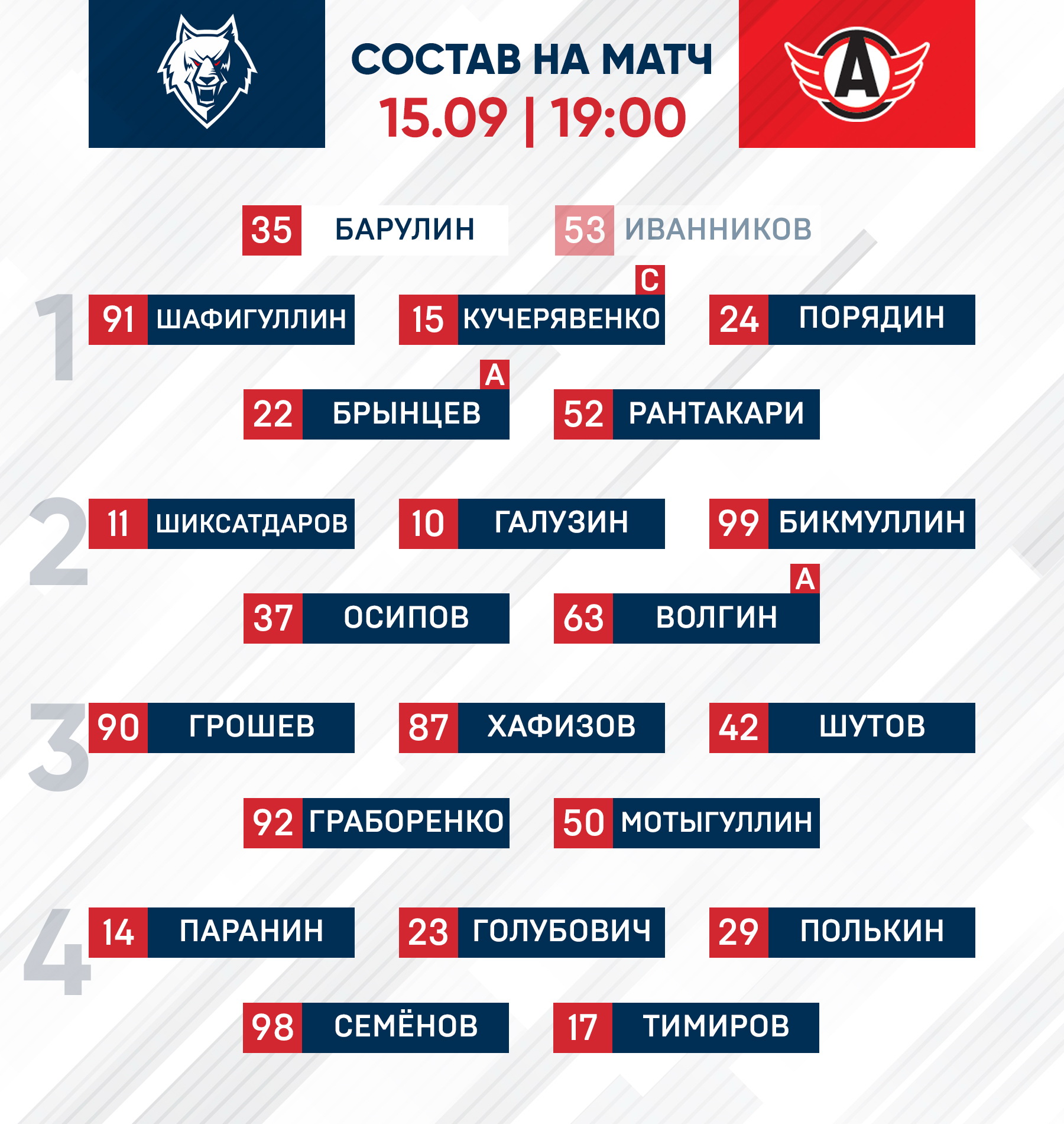 «Нефтехимик» - «Автомобилист»: состав нашей команды