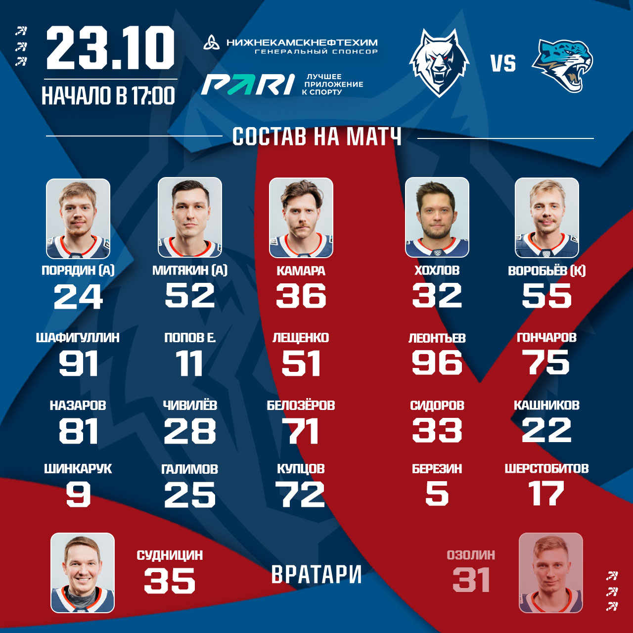 Напомним, что игра на «Нефтехим Арене» стартует в 17 часов. В прямом эфире поединок смотреть на телеканале КХЛ Prime.