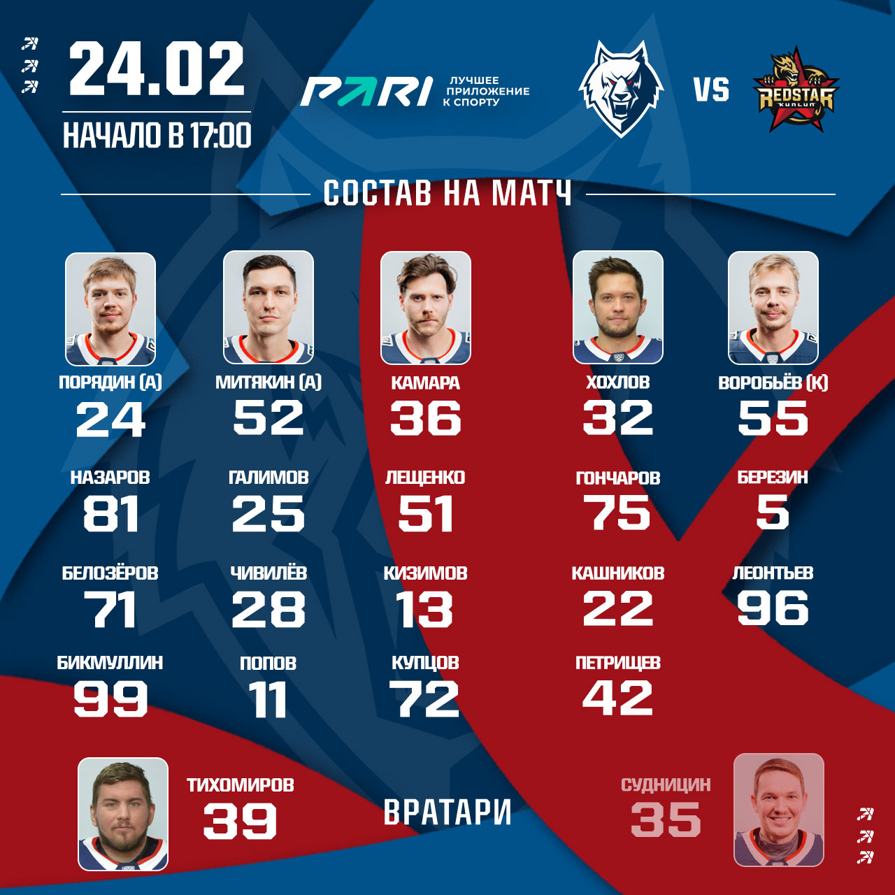 Тренерский штаб Олега Леонтьева назвал состав на домашний матч с «Куньлунь РС».
