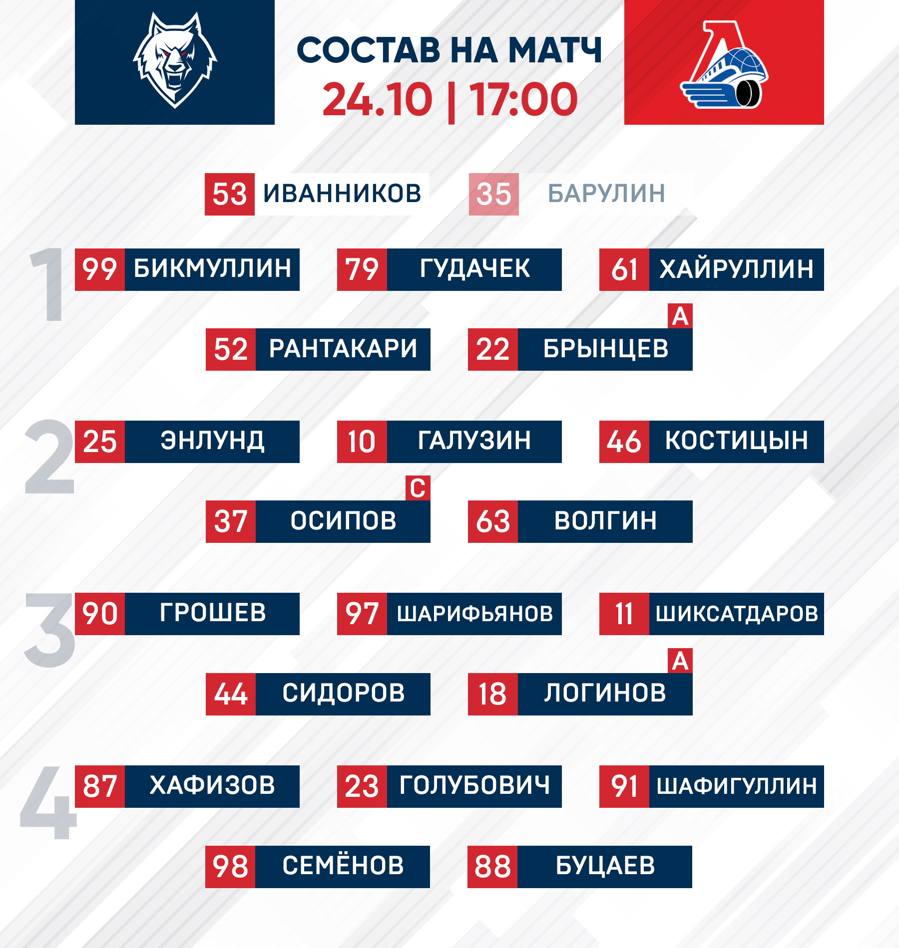 «Нефтехимик» - «Локомотив»: состав нашей команды