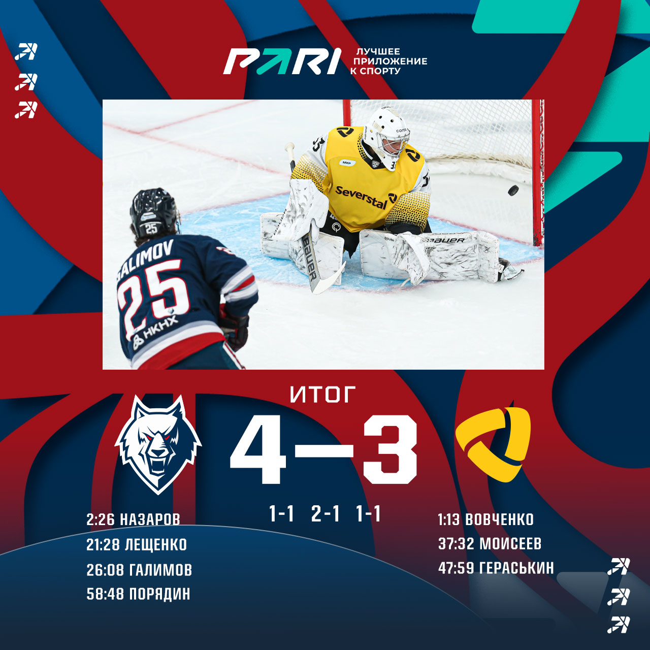 Наша команда продолжила новогоднюю домашнюю серию, обыграв сегодня вечером череповецкую «Северсталь» со счетом 4:3.