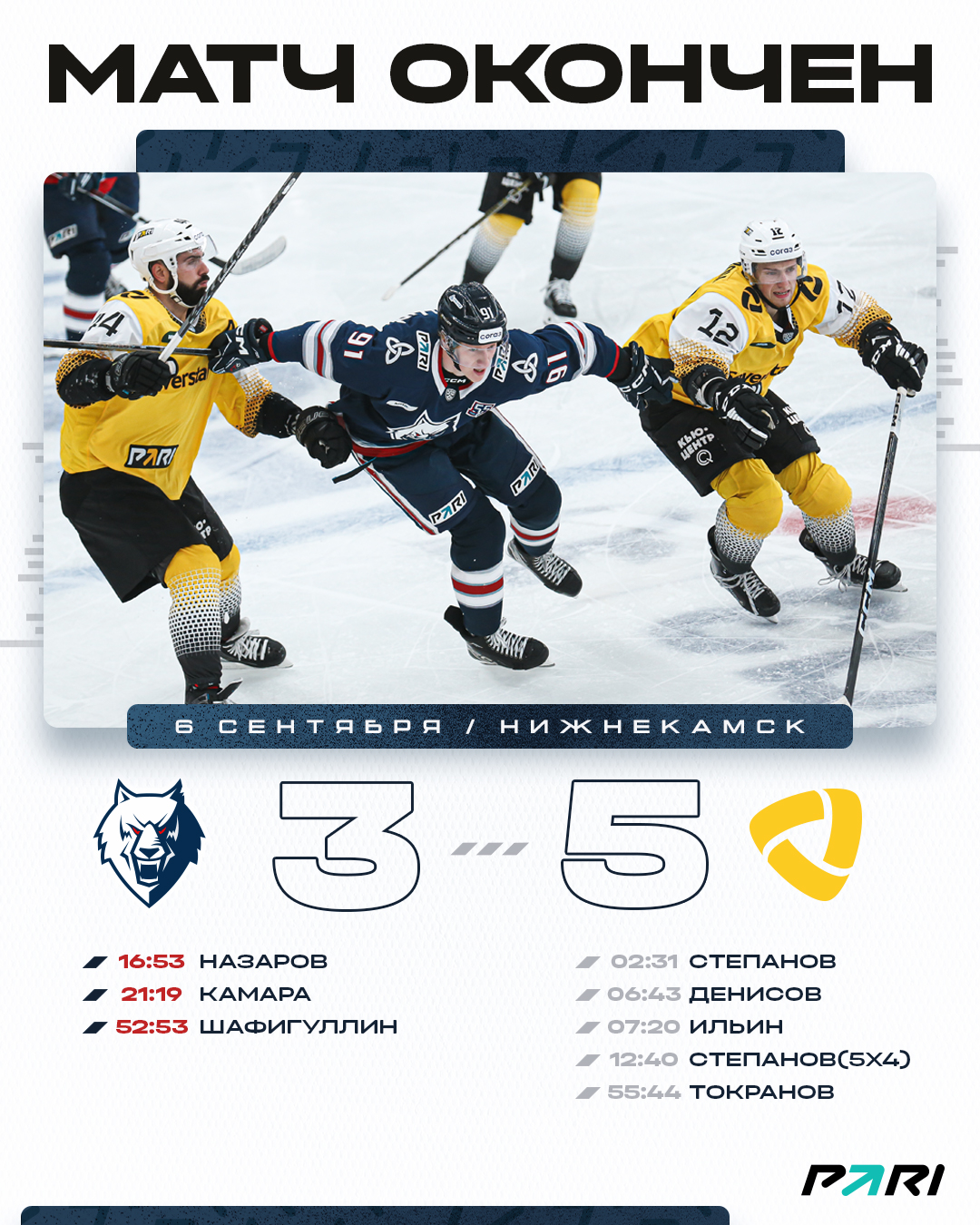 В концовке матча соперники обменялись голами. У нас отличились Булат Шафигуллин. 3:5 – второе поражение в сезоне...