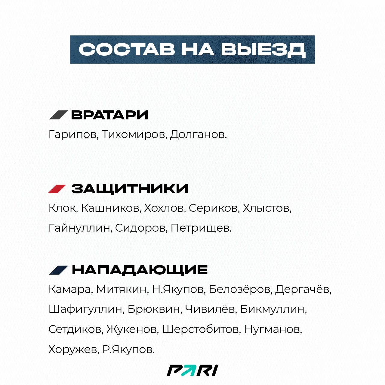 Тренерский штаб Олега Юрьевича Леонтьева взял в поездку следующий состав.
