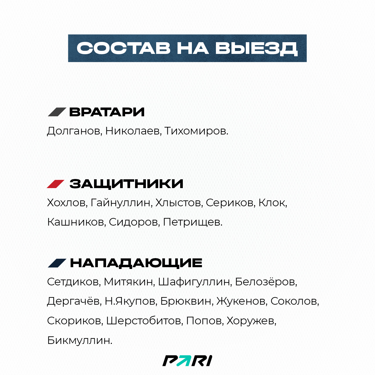 В поездку тренерский штаб Олега Леонтьева взял следующий состав.