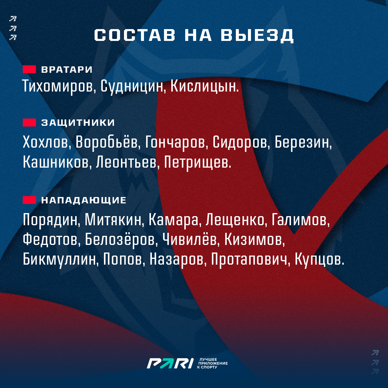 Тренерский штаб Олега Леонтьева взял в поездку следующих игроков.