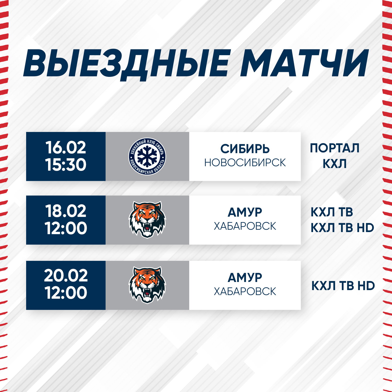 Расписание выездных игр представлено ниже.