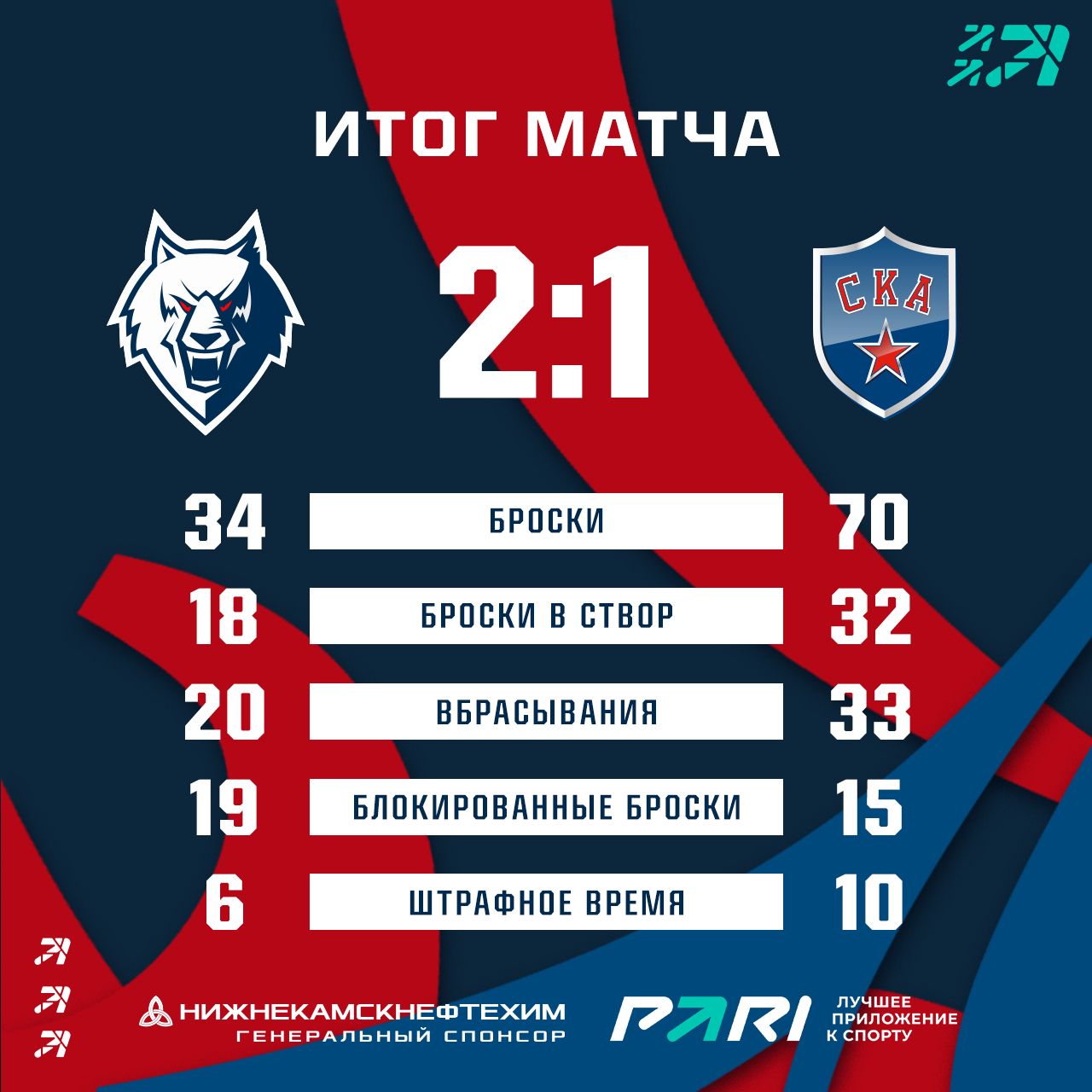 Наша команда начала домашнюю серию с победы над лидером FONBET регулярного чемпионата - СКА. Армейцы с Невы были обыграны со счетом 2:1.