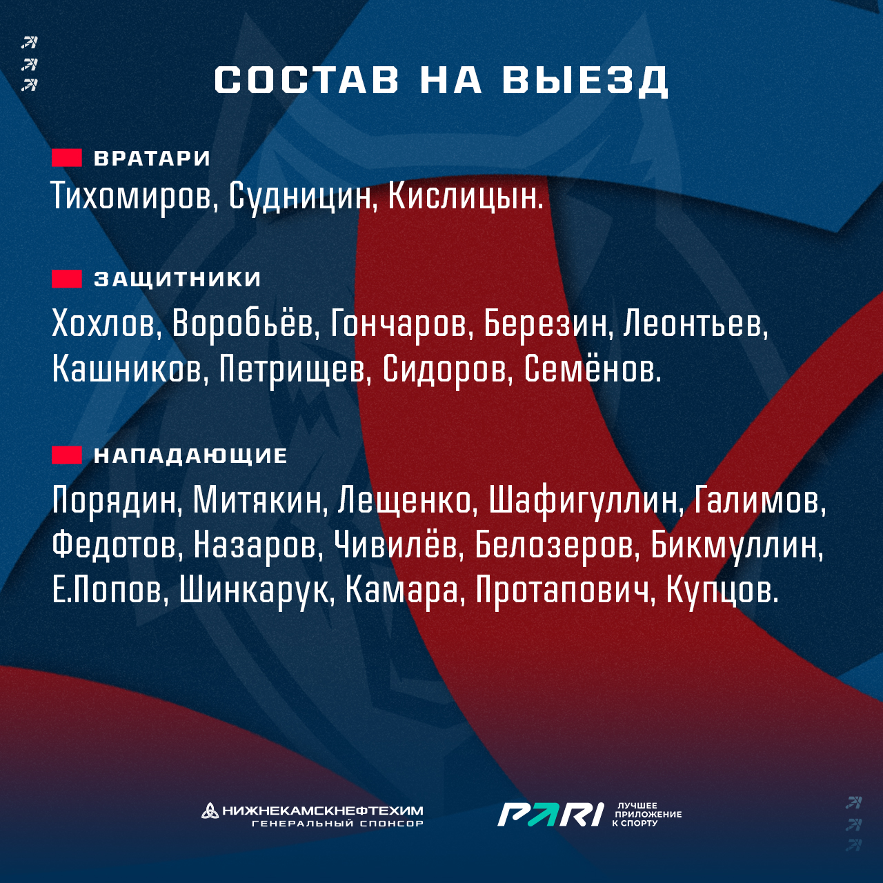 В поездку тренерский штаб Олега Леонтьева взял следующий игроков.