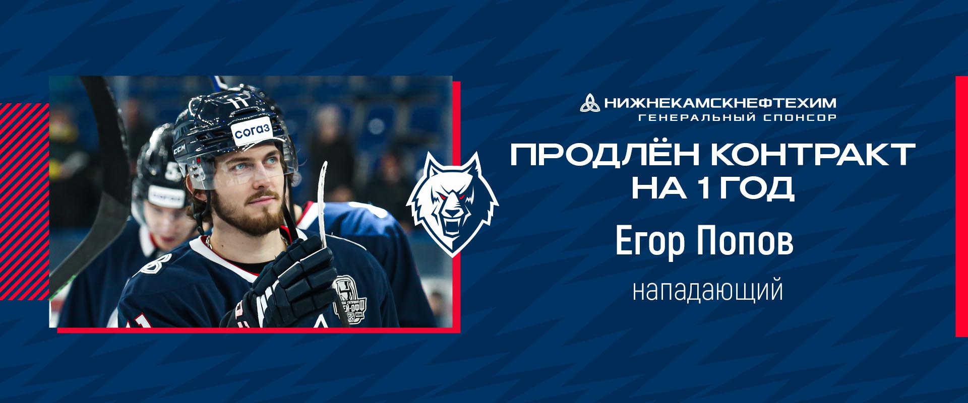 ХК «Нефтехимик» до конца сезона 2022/2023 продлил соглашение с нападающим Егором Поповым.
