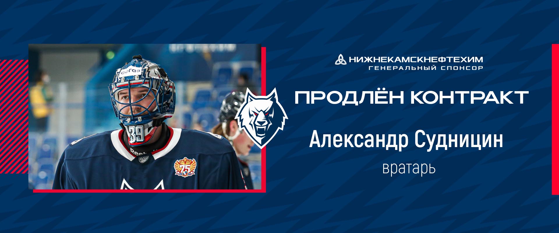 Хоккейный клуб «Нефтехимик» продлил контракт с голкипером Александром Суднициным на один год.