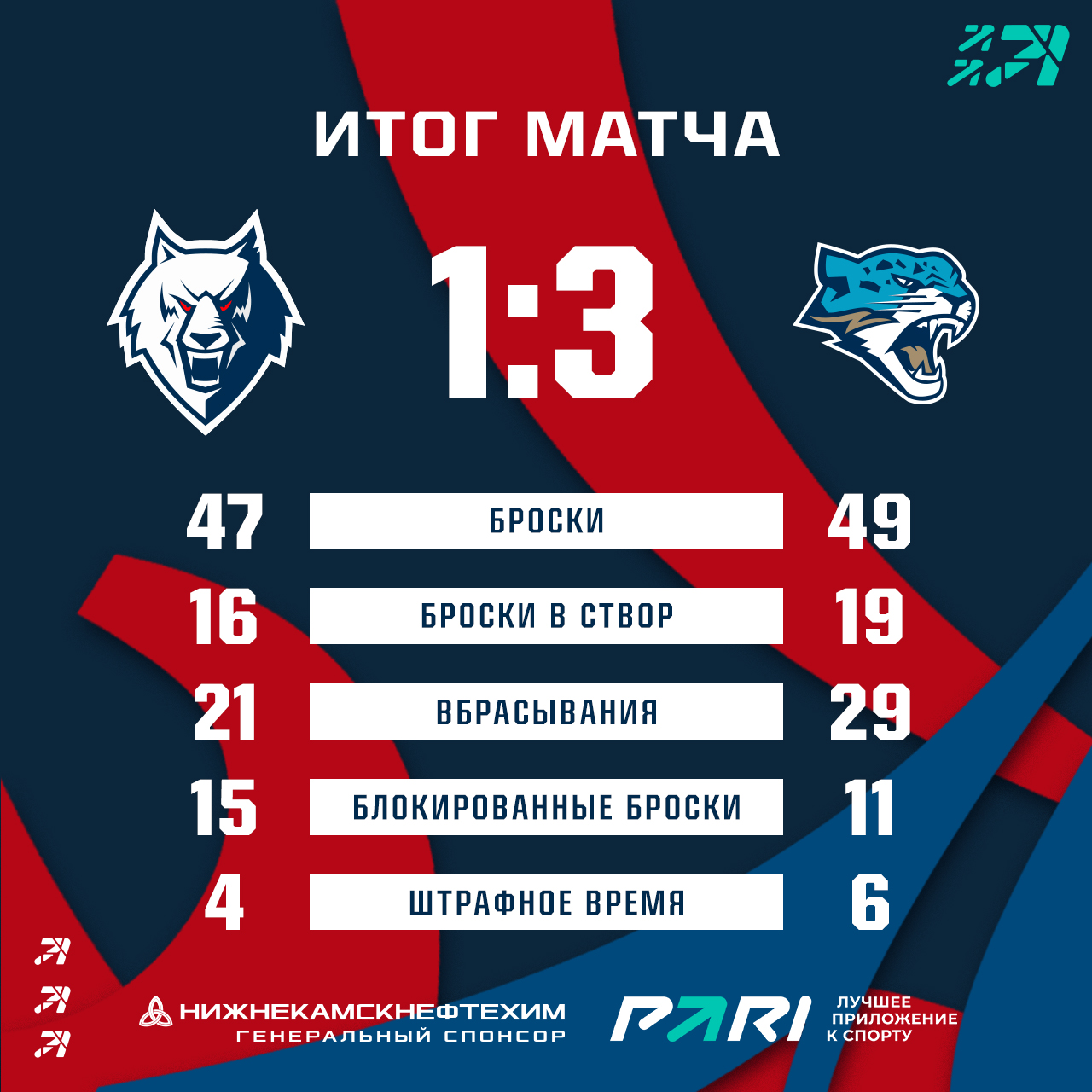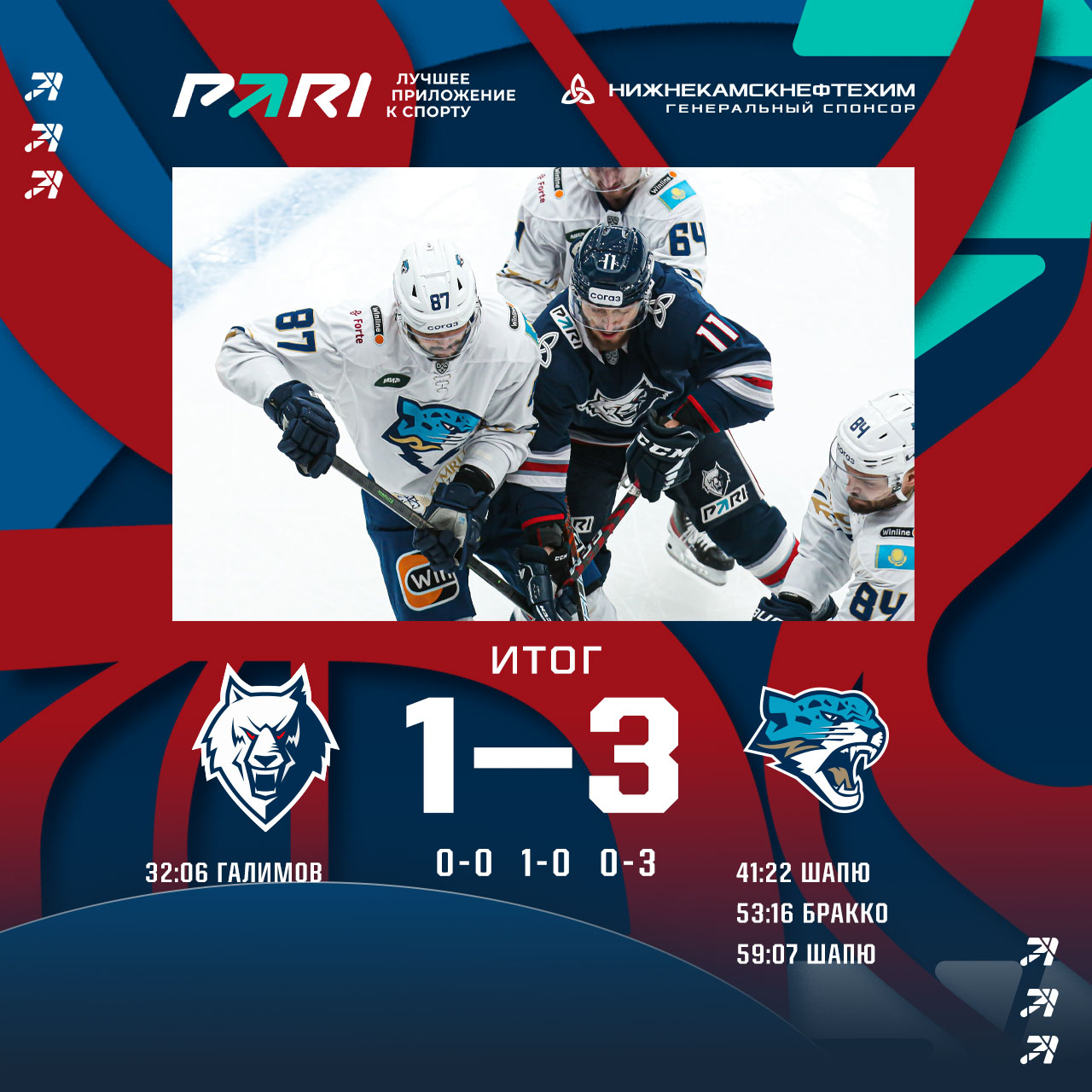 После 40 минут матча все складывалось для нижнекамцев довольно успешно. «Волки» вели 1:0 после шайбы Ансели Галимова, но третий период полностью перевернул игру. Астанчане забросили три безответные шайбы и забрали два очка в турнирную таблицу.Следующий матч «волки» также проведут дома. 21 декабря предстоит поединок с «Куньлунь РС».