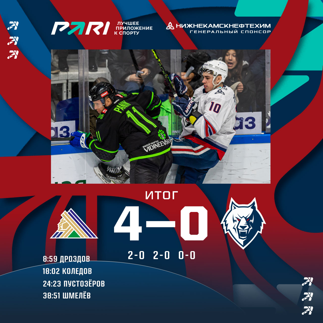 Исход поединка во много решила игра в большинство. Хозяева реализовали 2 из 6 наших удалений. «Волки» не смогли использовать ни одной из 4 попыток реализовать лишнего игрока.Из Уфы команда возвращается домой, где уже в понедельник, 17 октября, сыграем с «Сибирью». Билеты покупай исключительно в кассах «Нефтехим Арены» или онлайн на нашем сайте.