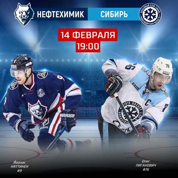 Матч «Нефтехимик» – «Сибирь» пройдет 14 февраля в Нижнекамске и начнется в 19.00. Билеты на игру доступны на tickets.hcnh.ru , а также в кассах «Нефтехим Арены».