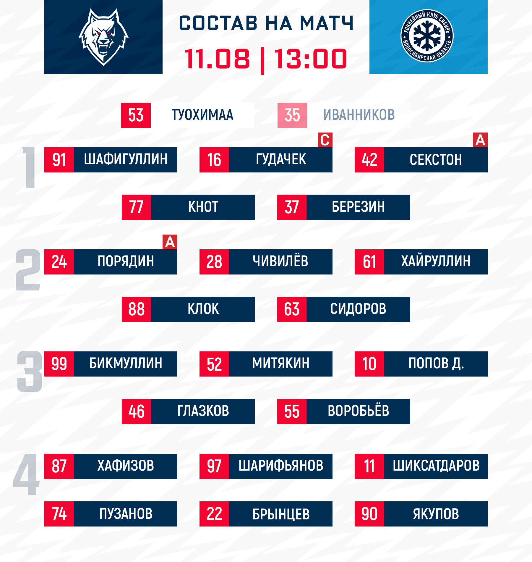 Стал известен состав нашей команды в котором мы сыграем в матче Мемориала имени Ивана Ромазана с «Сибирью».