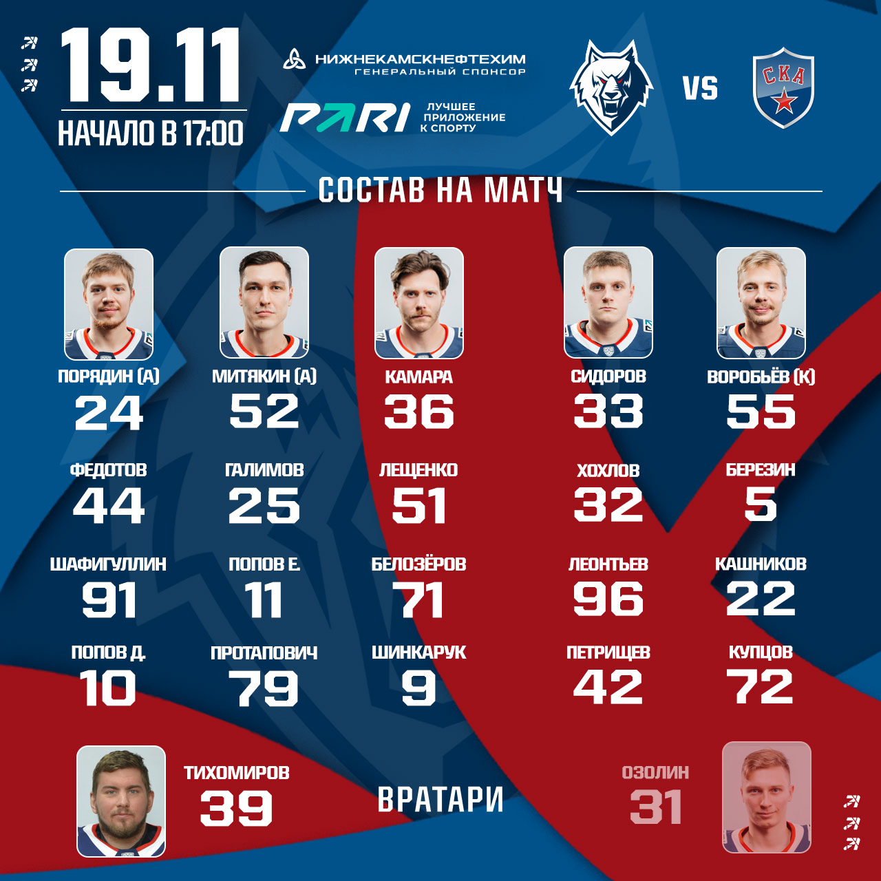 «Нефтехимик» - СКА: состав нашей команды