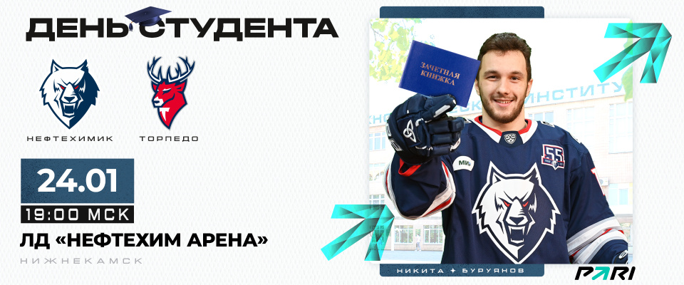Этот матч мы посвящаем дню студента и Татьянину дню. Всем учащимся ВУЗов и Татьянам билеты на игру по 150 рублей при предъявлении студенческого билета и паспорта.Напомним, что встреча на льду «Нефтехим Арены» стартует в 19 часов. «Волки» ждут вашей поддержки на трибунах!