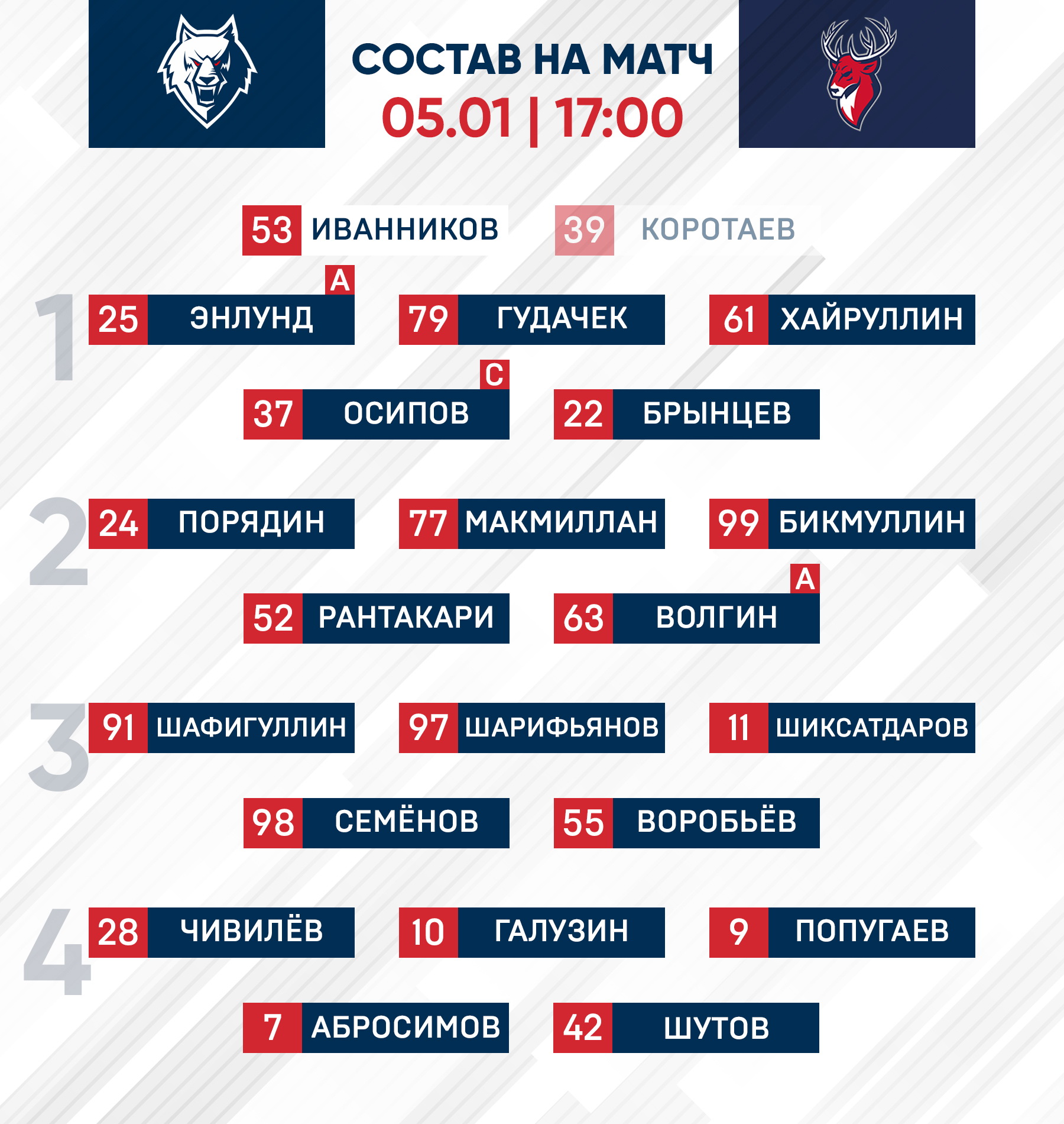 Поединок на «Нефтехим Арене» стартует в 17 часов. В прямом эфире его можно будет посмотреть на портале КХЛ и в официальном приложении Лиги.