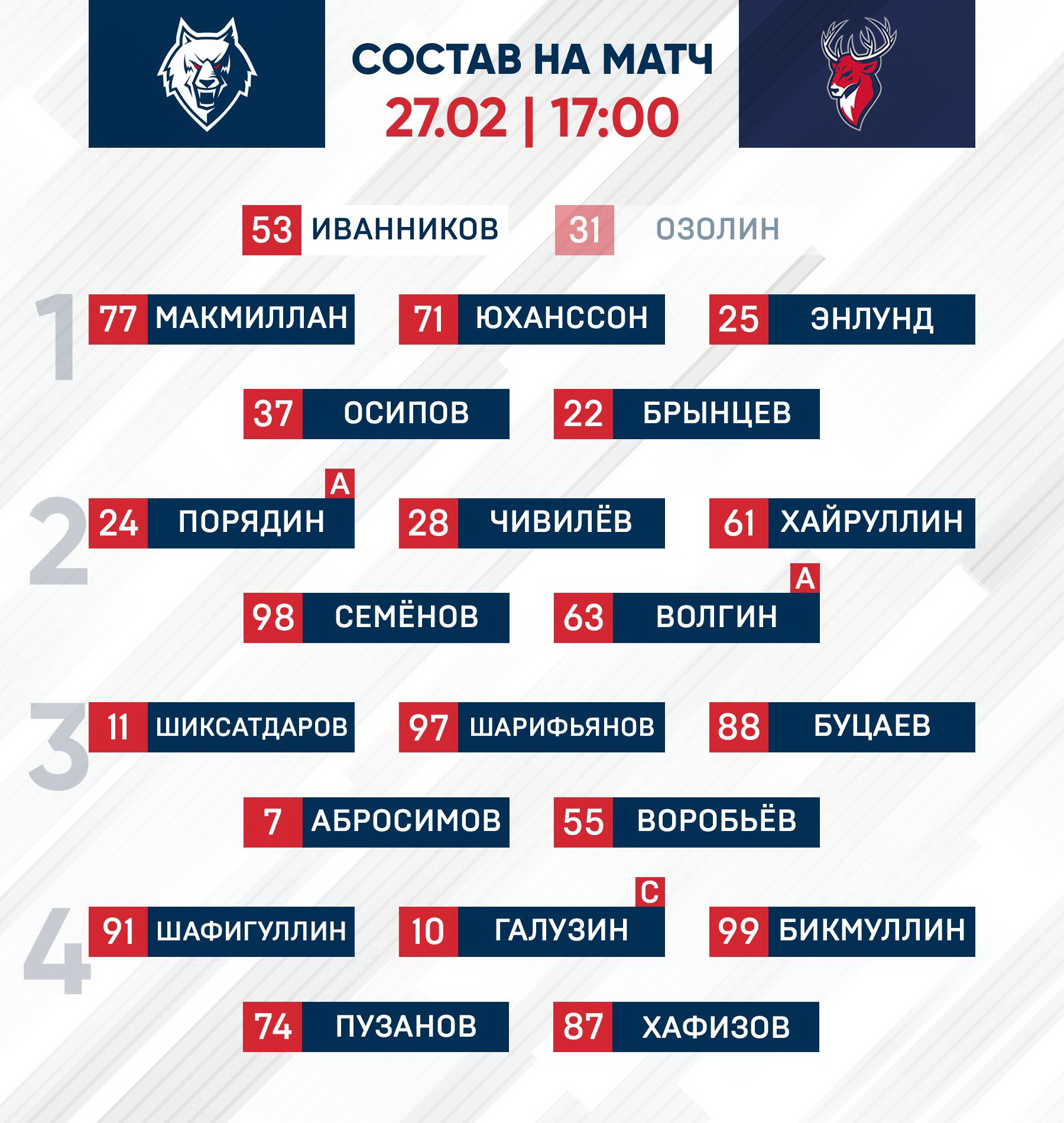 Поединок на «Нефтехим Арене» стартует в 17 часов. В прямом эфире его можно будет посмотреть на портале КХЛ и в официальном приложении Лиги.