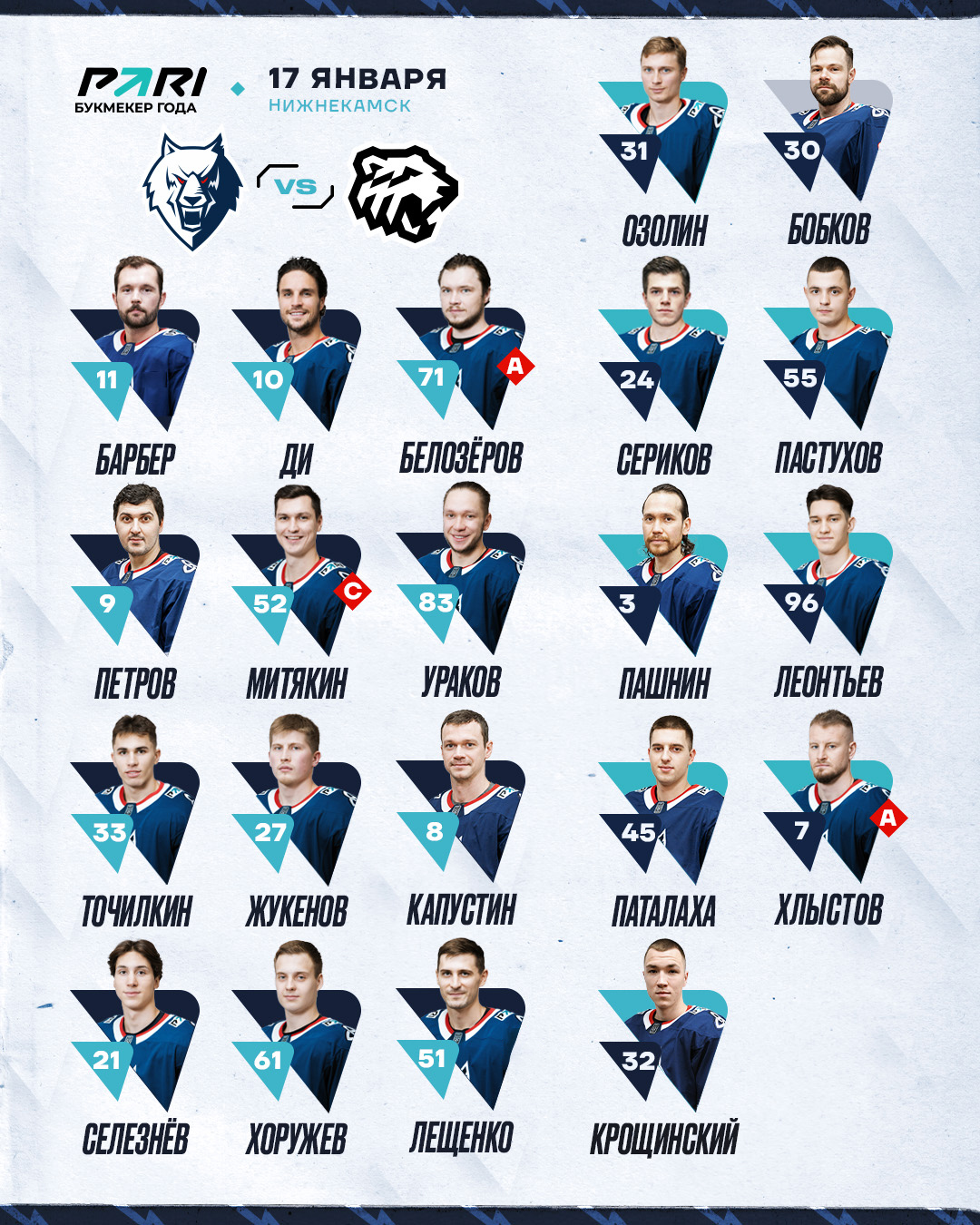 «Нефтехимик» - «Трактор»: состав нашей команды