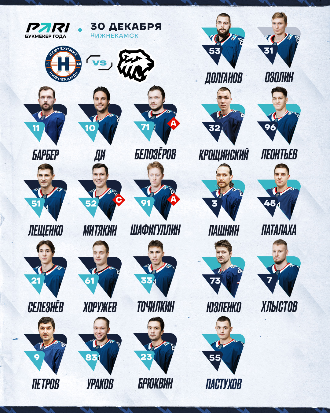 «Нефтехимик» - «Трактор»: состав нашей команды