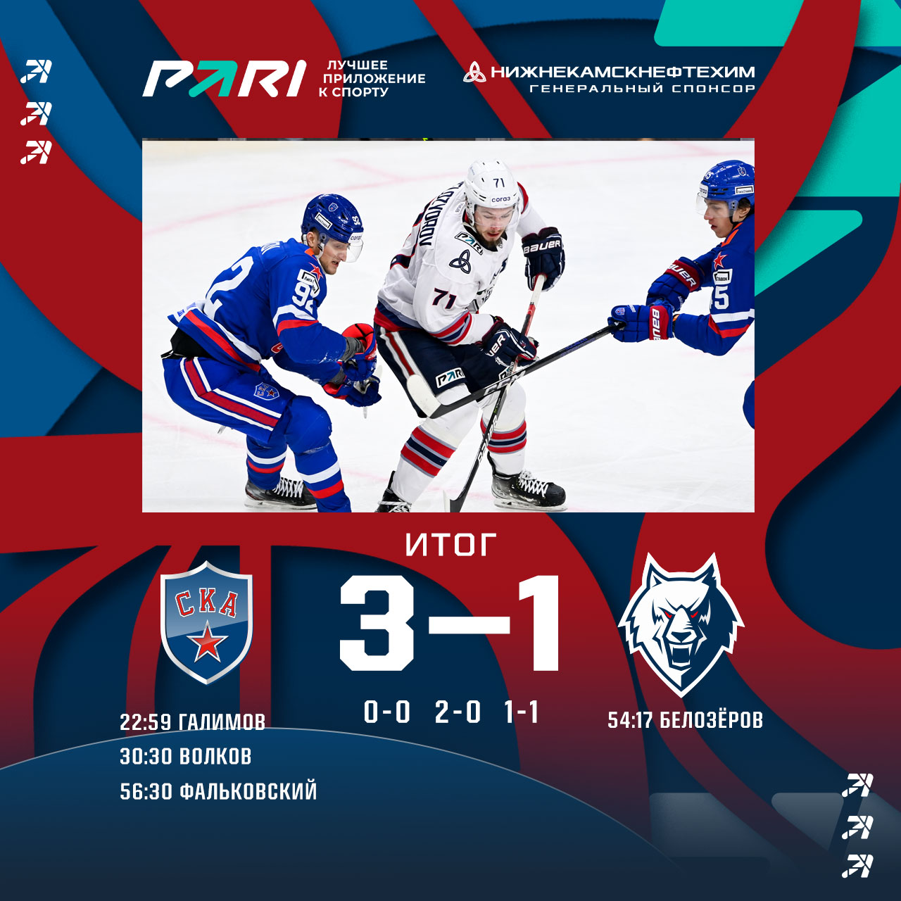 В первой игре очередной гостевой серии наша команда в Санкт-Петербурге проиграла со счетом 1:3 лидеру FONBET Чемпионат КХЛ - СКА.