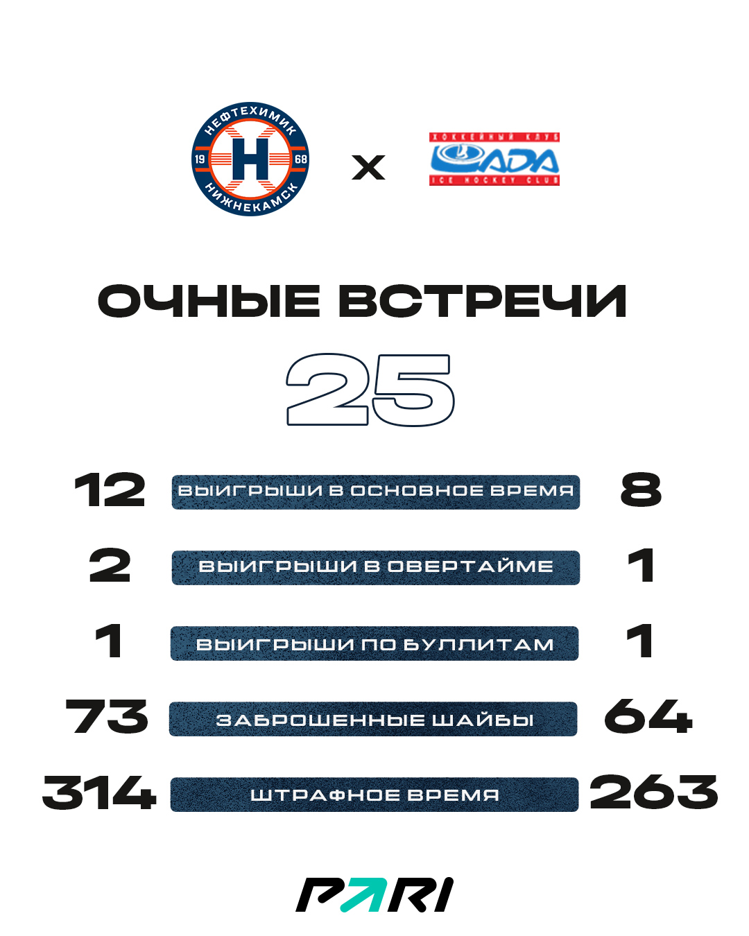 Ниже приводим статистику встреч нижнекамцев и челябинцев в истории КХЛ.