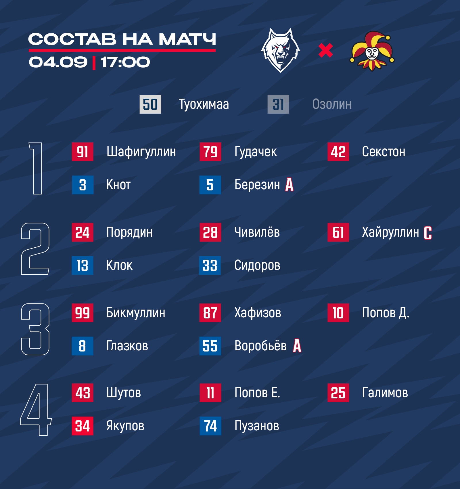 «Нефтехимик» - «Йокерит»: состав нашей команды