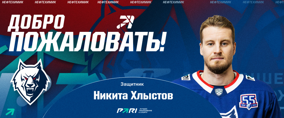 ХК «Нефтехимик» заключил однолетний контракт с защитником Никитой Хлыстовым (23.07.1993, 189/89, хват левый).