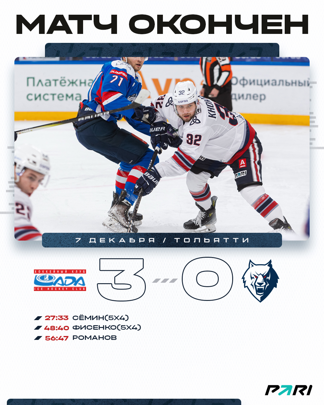 Наша команда сегодня завершила серию гостевых игры. В Тольятти «волки» проиграли «Ладе» со счетом 0:3.