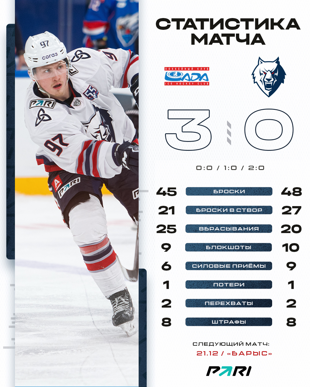 Следующий матч наша команда проведет дома, 21 декабря с «Барысом». Билеты уже сейчас вы может приобретать в кассах «Нефтехим Арены» или онлайн на нашем сайте.