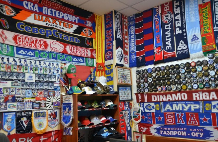 - Сейчас в моей коллекции 148 шарфов (среди них есть и футбольные), около 80 хоккейных значков, примерно 200 шайб и почти сотня вымпелов. Также есть 20-25 футболок. В последнее время я начал собирать брелоки и авторучки. Эта коллекция тоже зародилась неожиданно, с нескольких предметов...