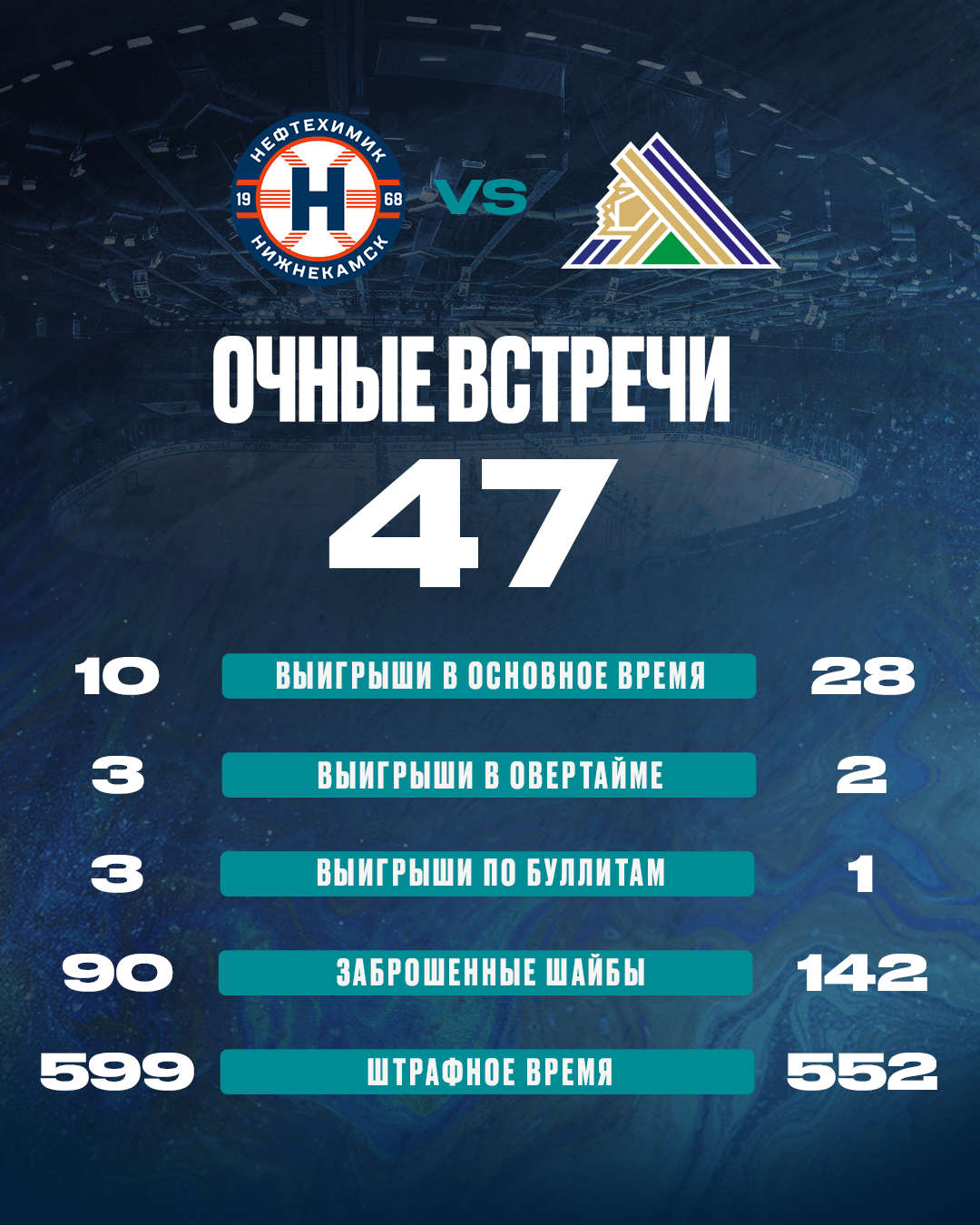 В завершении превью приведем статистику очных встреч команд в истории КХЛ.