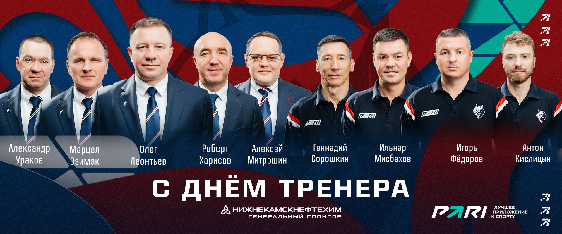 Поздравляем тренерских штабов ХК "Нефтехимик" и МХК "Реактор", ДЮСШ "Нефтехимик" и всех наставников спортивных школ и секций с профессиональным праздником!Желаем успехов в покорении новых высот, творческого вдохновения в работе, неиссякаемой энергии, здоровья, счастья и благополучия!