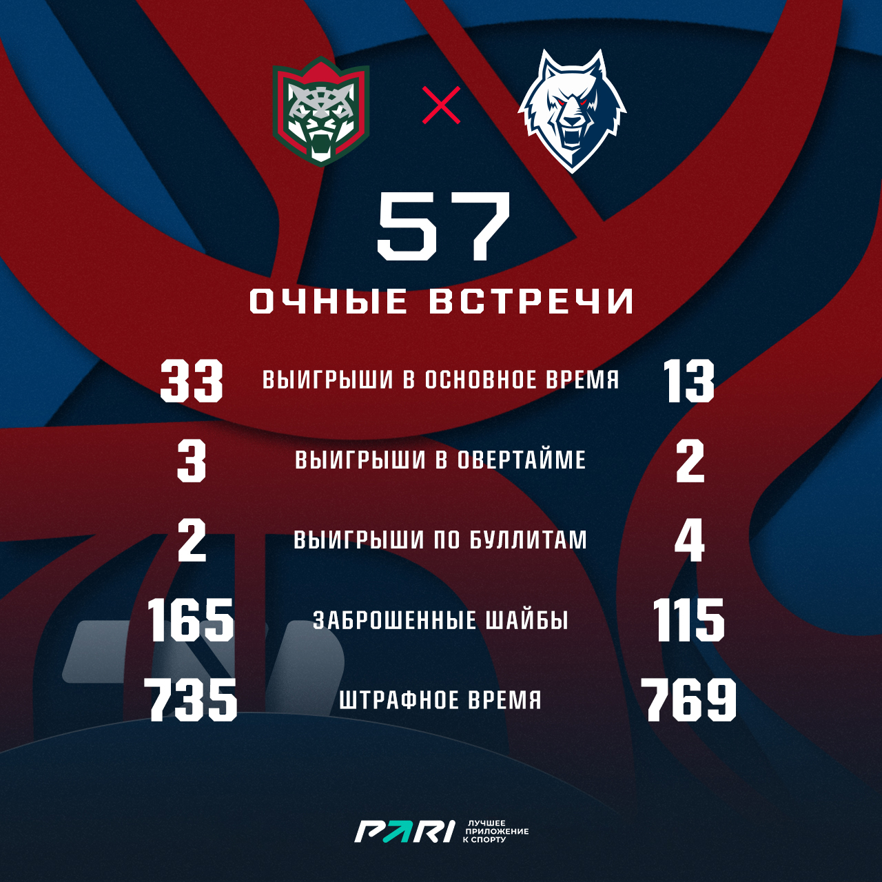 Поединок с «Ак Барсом» на льду «Татнефть Арены» стартует в 19.30. В прямом эфире его смотрите на телеканалах КХЛ Prime и ТНВ.Ниже приводим статистику предыдущим 57 татарстанских дерби.