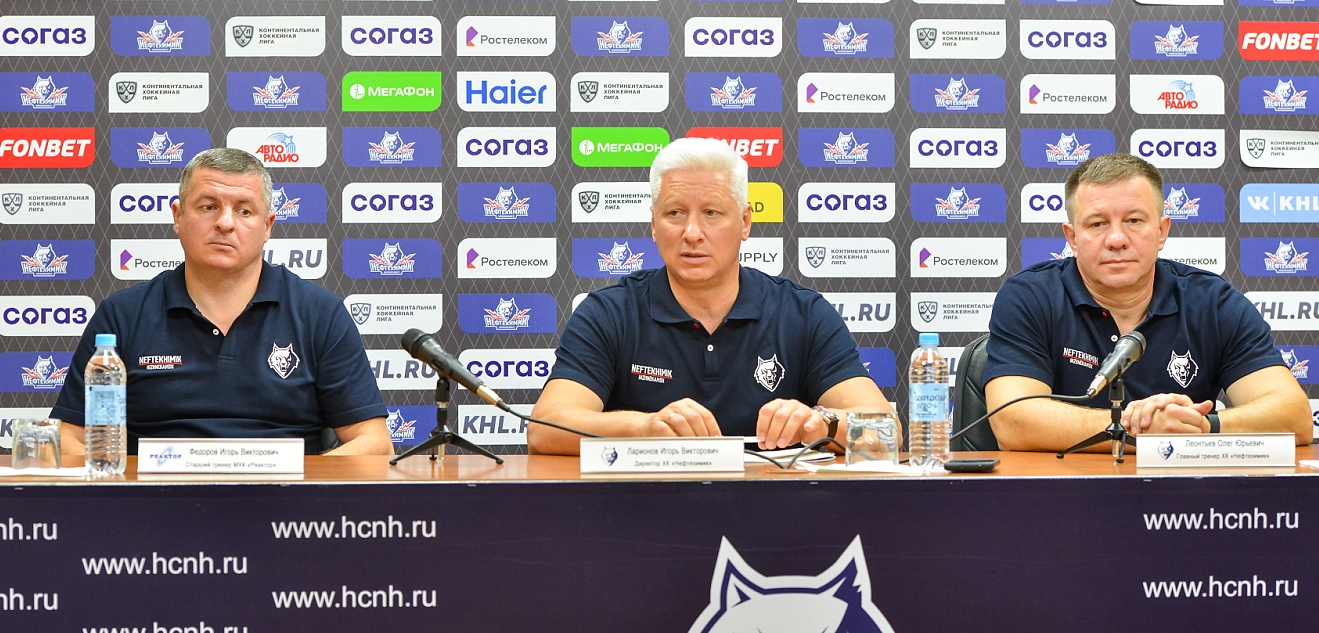 Сегодня состоялась традиционная пресс-конференция директора ХК «Нефтехимик» И.В. Ларионова, главного тренера ХК «Нефтехимик», О.Ю. Леонтьева и старшего тренера МХК «Реактор» И.В. Фёдорова, которые ответили на вопросы журналистов.