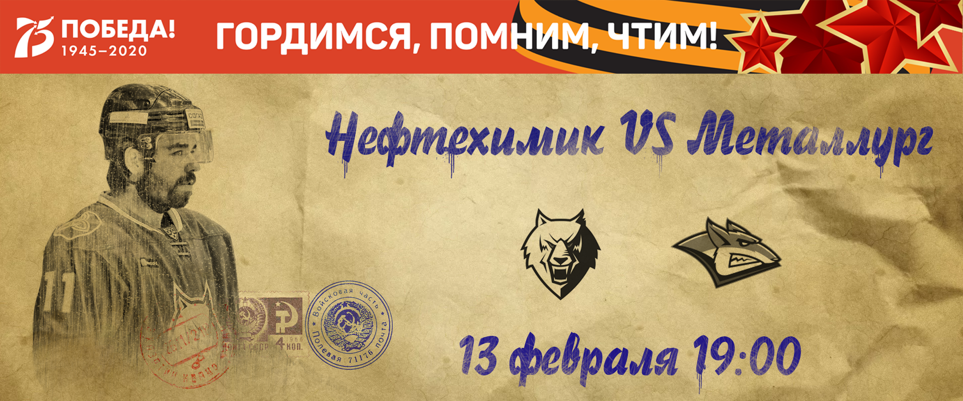 Матч с магнитогорским "Металлургом" будет посвящен Героям Советского союза и полным кавалерам Ордена Славы - участникам Великой Отечественной войны.