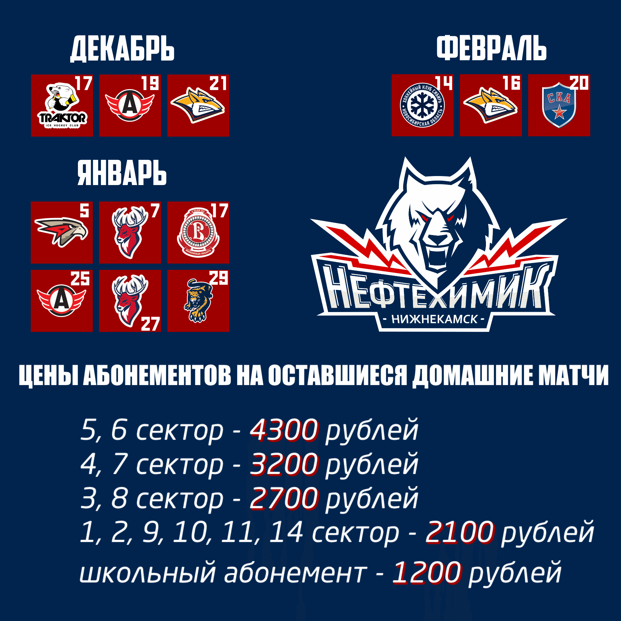 В кассах «Нефтехим Арены» и на нашем сайте можно приобрести абонементы на оставшиеся домашние матчи регулярного чемпионата-2018/2019!