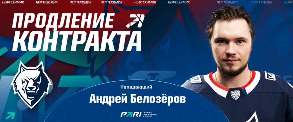 ХК «Нефтехимик» продлил контракт с форвардом Андреем Белозёровым до конца сезона-2025/2026.
