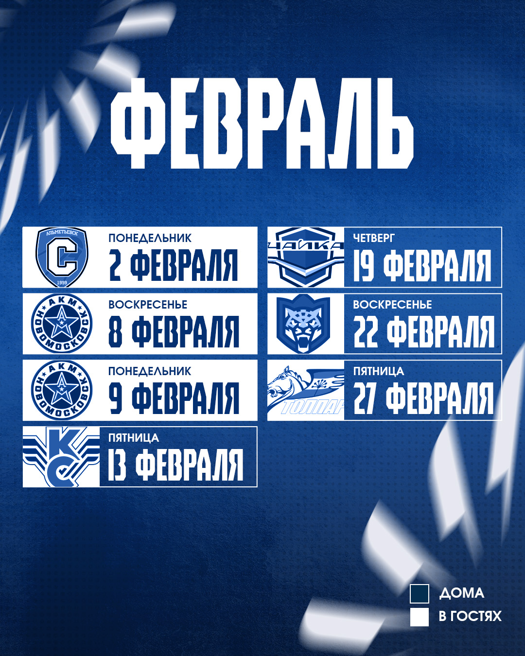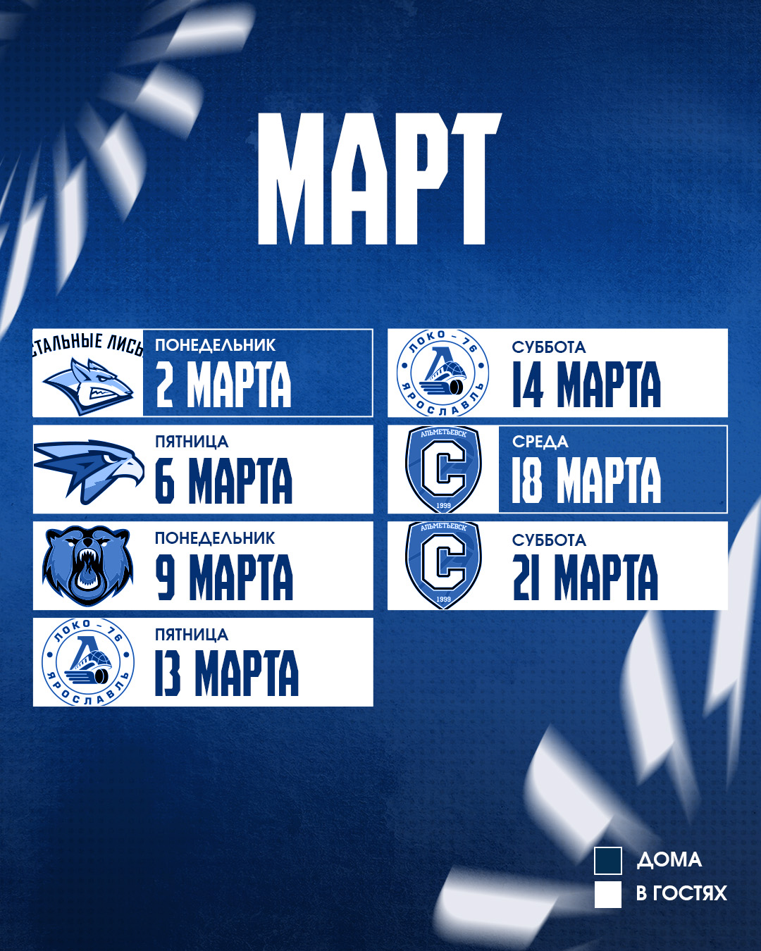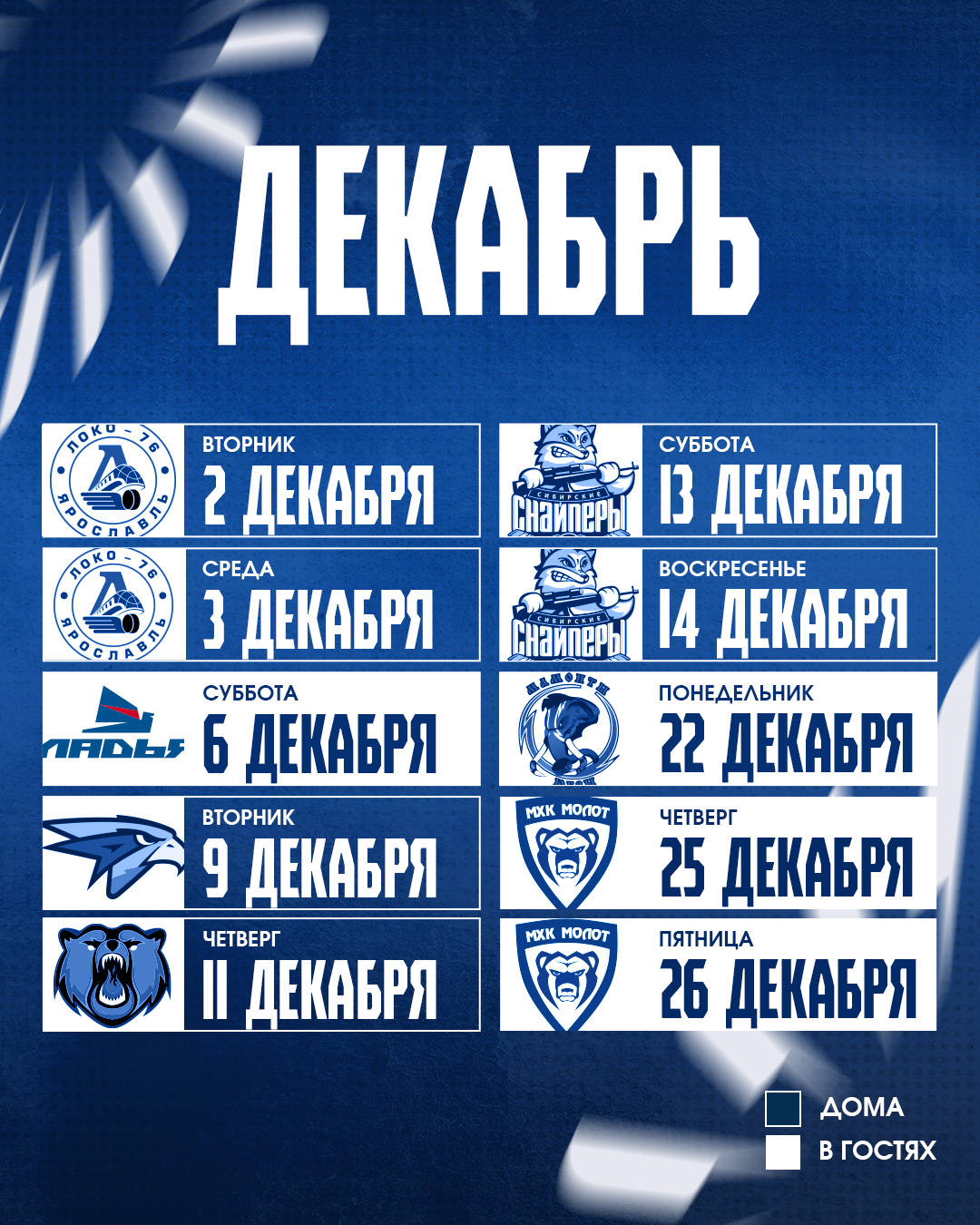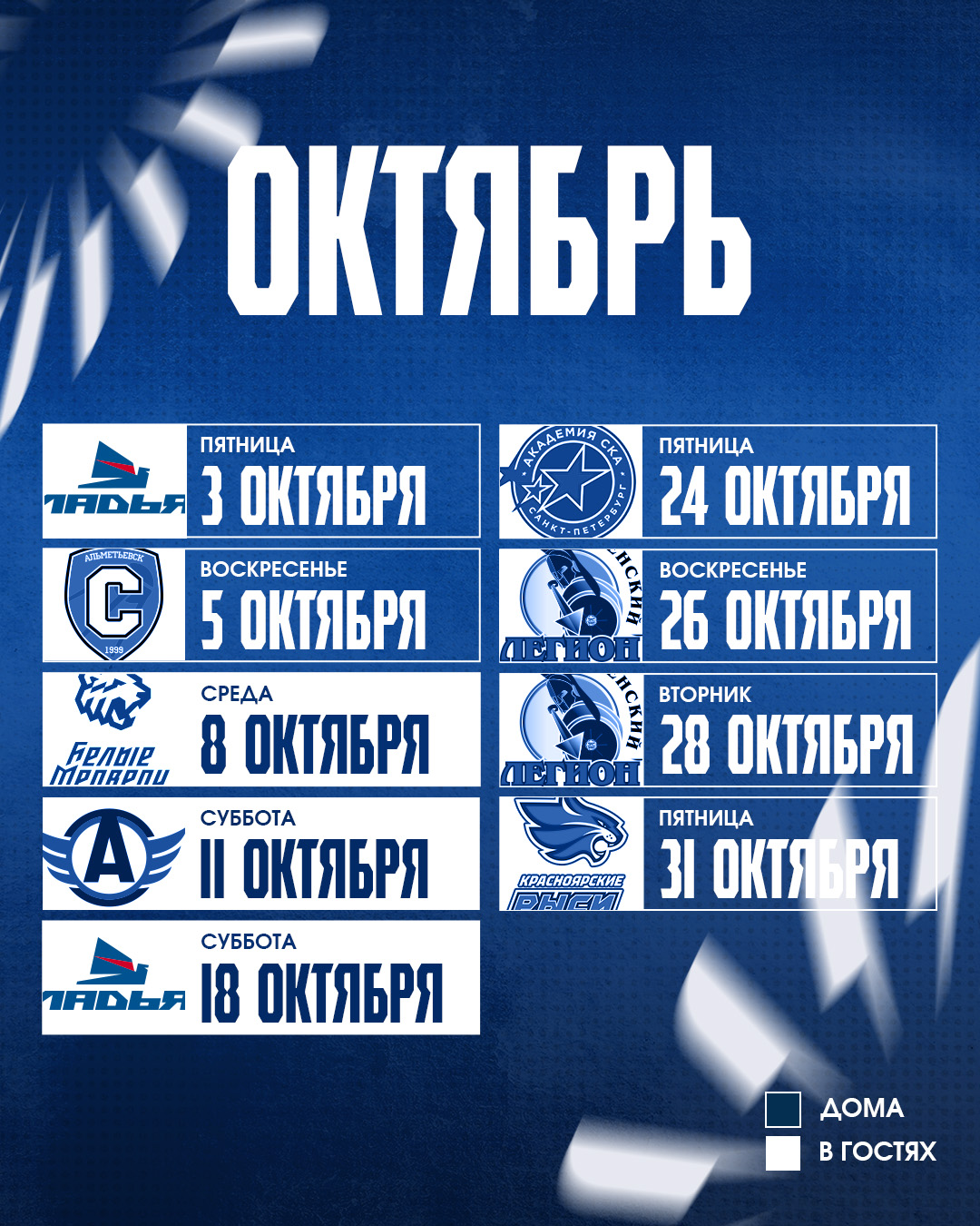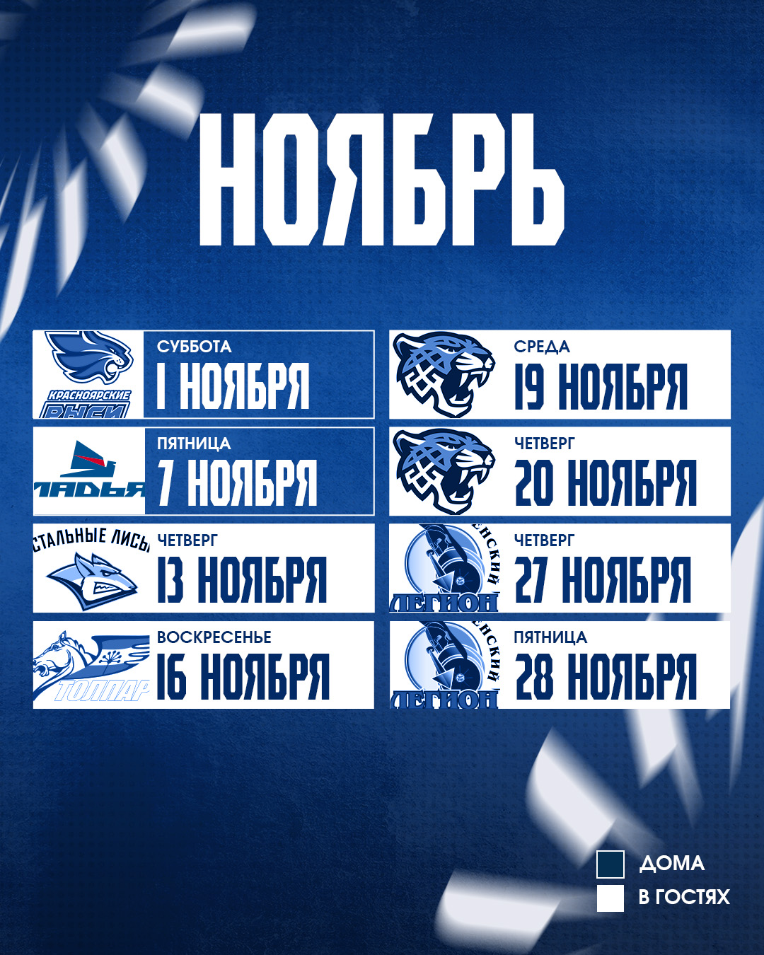 Расписание матчей МХК «Реактор» OLIMPBET чемпионата МХЛ 2025/2026