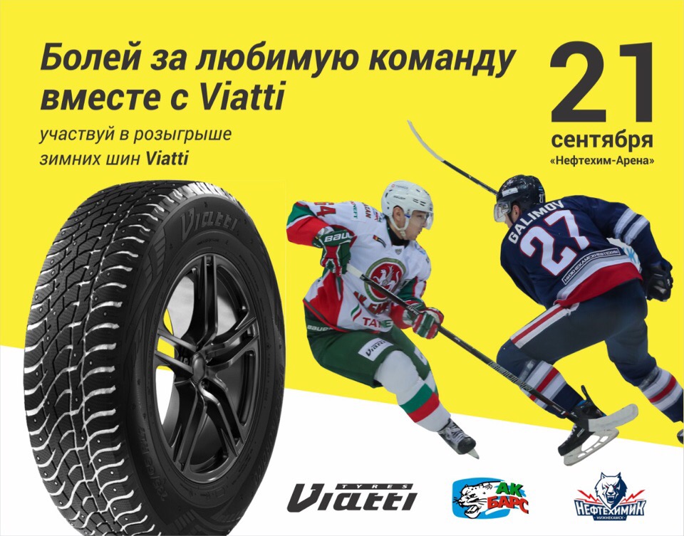 Ваш выбор - наш результат. Шины «Виатти» - сила в надежностиРозыгрыш состоится во время матча «Нефтехимик» - «Ак Барс».