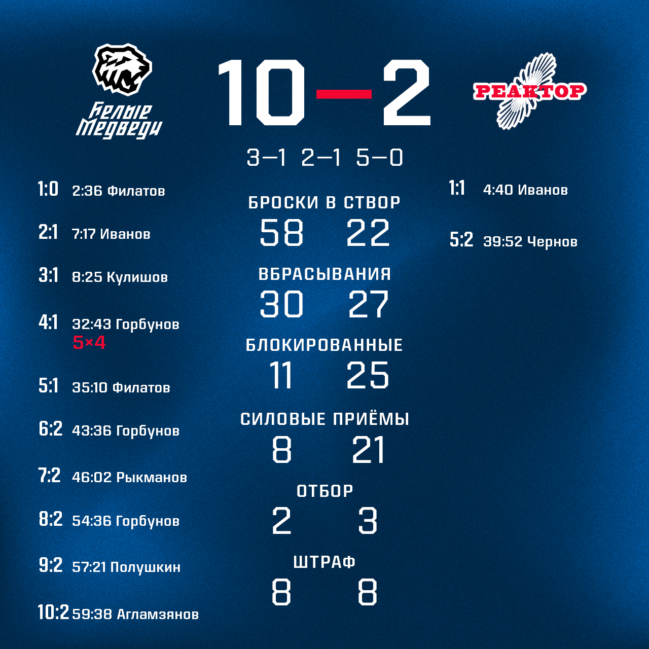 Свой следующий поединок «реакторщики» проведут в Омске, где 20 октября встретятся с «Омскими Ястребами».