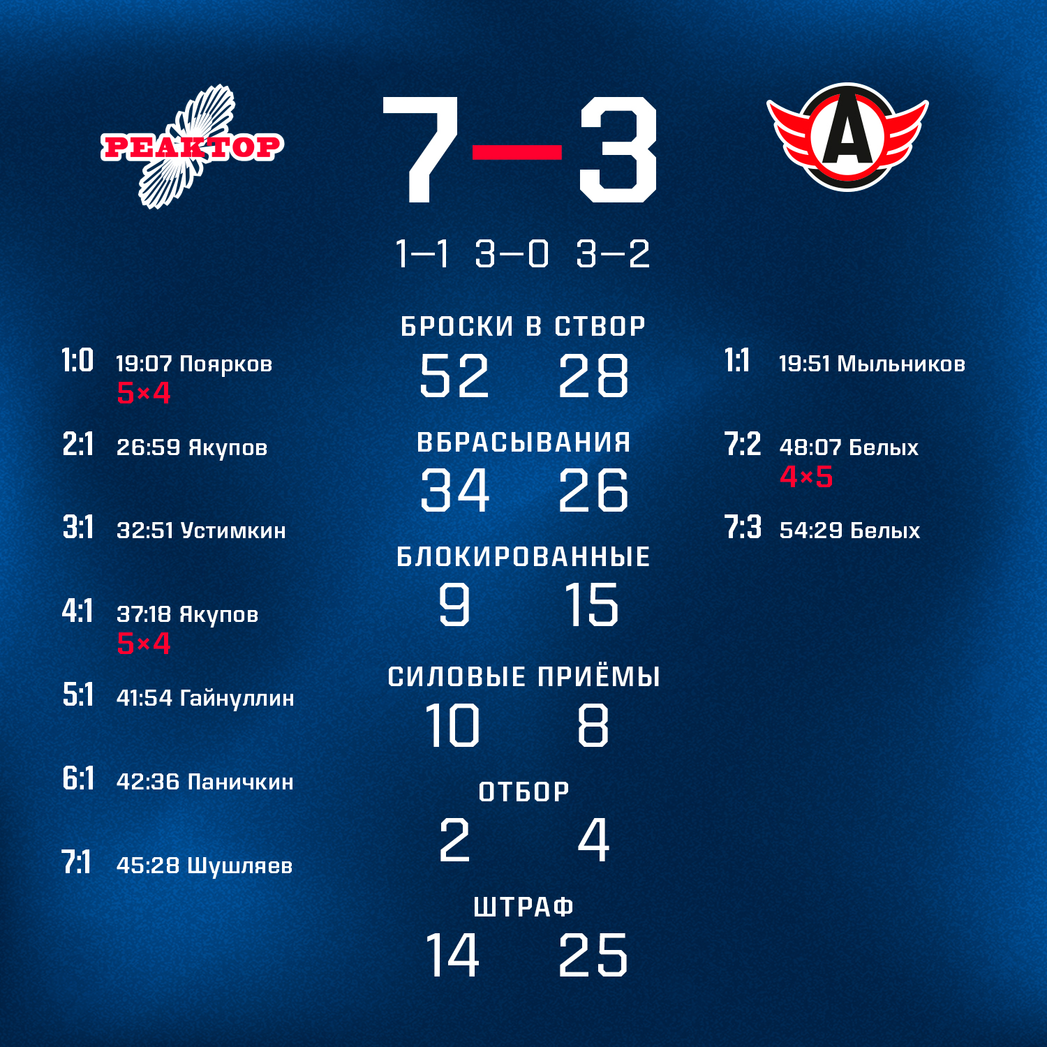 В очередном домашнем матче «реакторщики» встречались с соперником по серебряному дивизиону МХЛ «Авто» и добились красивой победы со счетом 7:3.