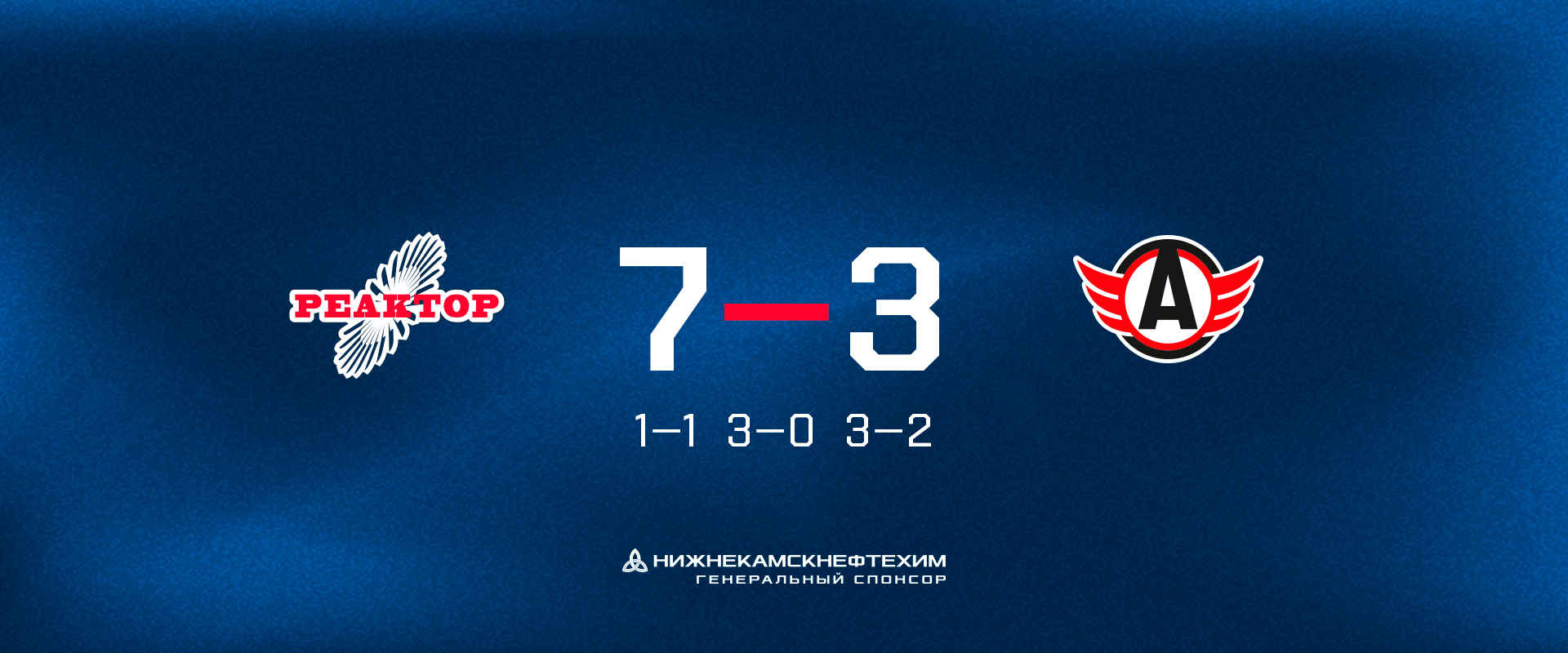 В первом периоде команды обменялись голами. Большой шаг к победе нижнекамцы сделали во вторые 20 минут, когда забросили три безответные шайбы.Больше всего голов зрители этим вечером увидели в третьем периоде. Сначала «Реактор» довел свое преимущество до 7:1, но дал гостям возможности отыграть две шайбы. 7:3 - это третья кряду победа нижнекамцев!