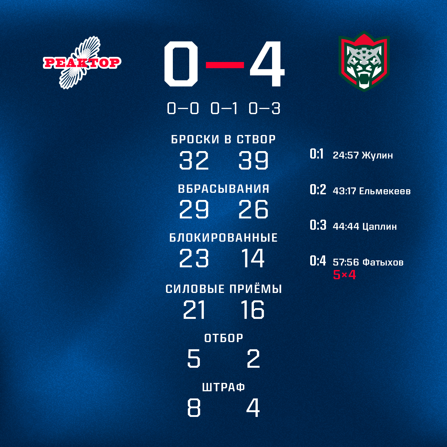 В очередном матче Olimpbet Чемпионат МХЛ «Реактор» встречался с «Ирбисом» и уступил со счетом 0:4.