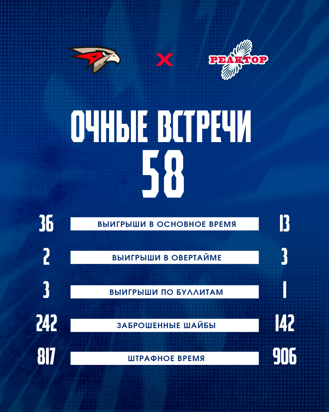 Ниже приводим статистику встреч команд в истории МХЛ.