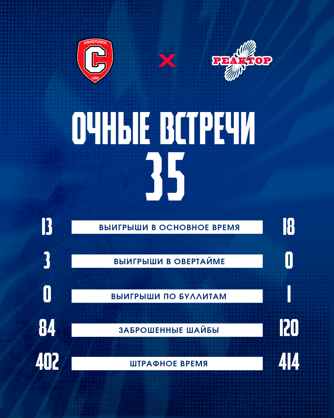 О сопернике.Альметьевцы провели 46 игр, набрав 42 очка. Всего у команды 20 побед,15 из которых в основное время. А в таблице «Серебряного» дивизиона подопечные Даниила Архипова занимают пятую строчку.