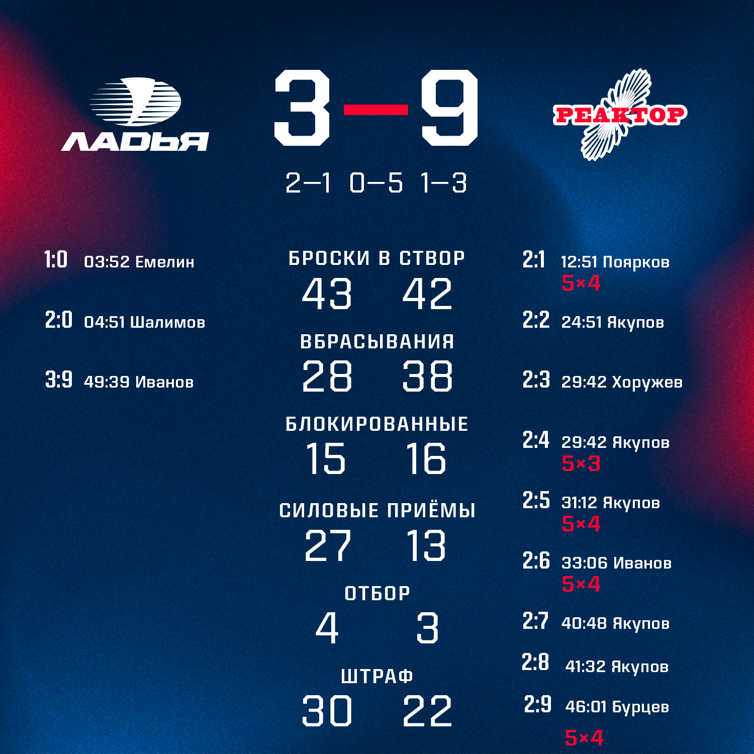 В третьем туре предсезонного турнира «Кубок Сахарова» «Реактор» встречался с хозяевами льда из тольяттинской «Ладьи» и добился разгромной победы 9:3.